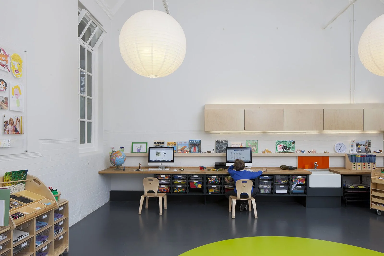 We achieved this by embracing the original Victorian features of the Grade II listed building. Lofty ceilings and sash windows enable good daylight and natural ventilation – perfect passive principles. We effectively ‘excavated’ the building, stripping away decades of substandard additions and quick-fixes to expose the natural materials and covered-up features like glazed brick, hardwood floors and fireplaces. This created individual, characterful rooms to fuel children’s imagination while easily accommodating modern furniture, lighting and IT. The result is a non-toxic, low energy, joyful environment.